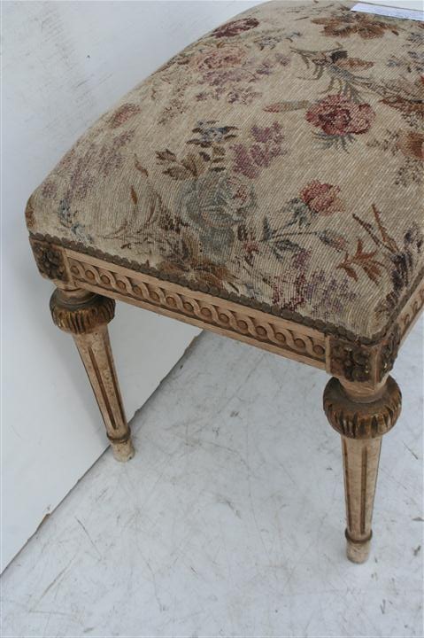 Espectacular banqueta de estilo patinada Es ideal para colocar en cualquier ambiente de su hogar El tapizado es antiguo, retapizamos a precios convenientes, consultenos |