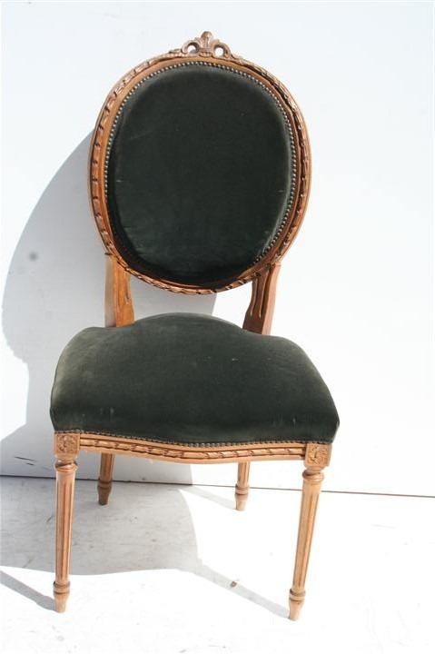 Espectacular juego de 4 sillas estilo francés Luis XVI medallon antiguas Son ideales para completar de forma única su juego de comedor El tapizado es antiguo – consulte por retapizado, precios convenientes – |