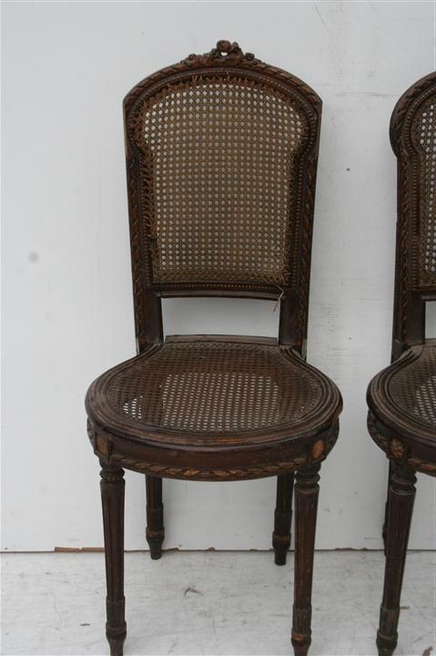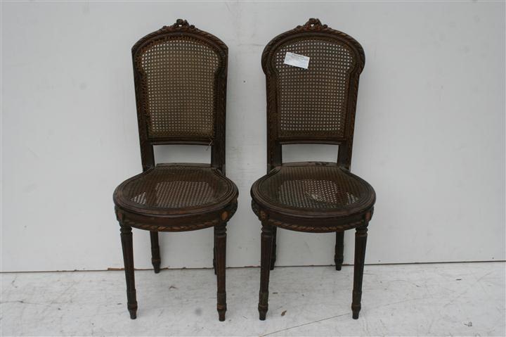 Espectacular par de sillas estilo francés Luis XVI antiguas con esterilla Son ideales para colocar en cualquier ambiente de su hogar La esterrilla esta rota, pero se puede reemplazar. |