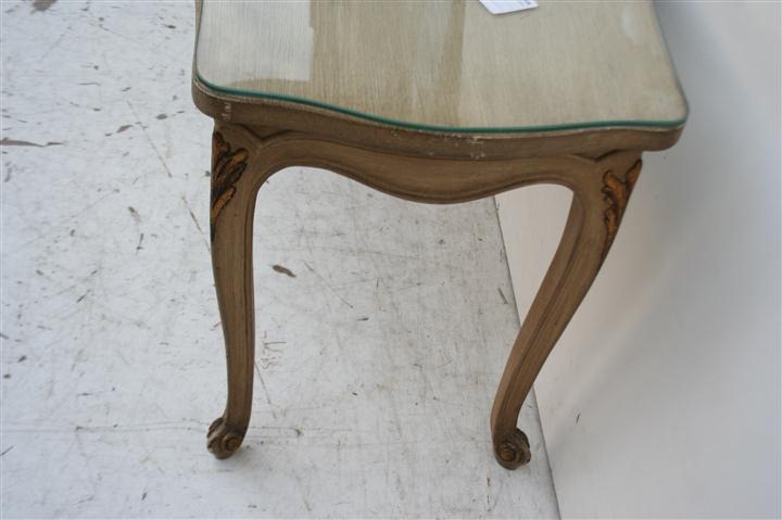 Espectacular mesa centro o ratona con tapa de vidrio de estilo francés Luis XV patinada