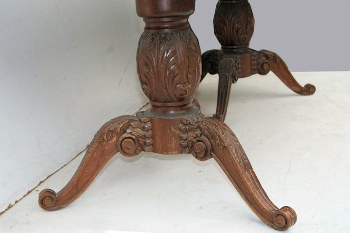 Espectacular mesa de comedor antigua con doble bocha Es ideal para completar su juego de comedor con una pieza de calidad excepcional Se entrega con el relustrado a nuevo de la estructura de madera, lista para usar |