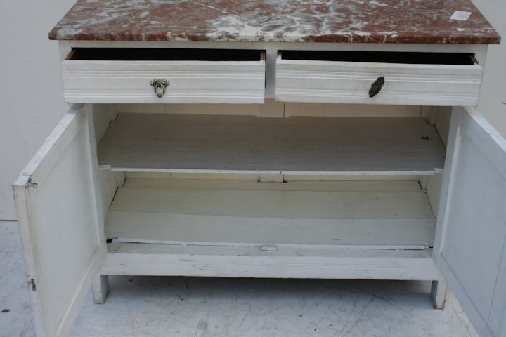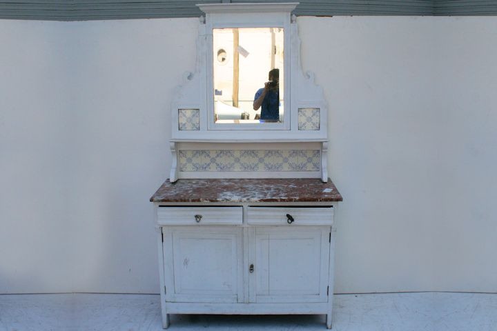 Espectacular lavatorio de madera antiguo con mármol y espejo Es ideal para decorar de su forma única su baño o dormorio Posee puertas inferiores con estante |