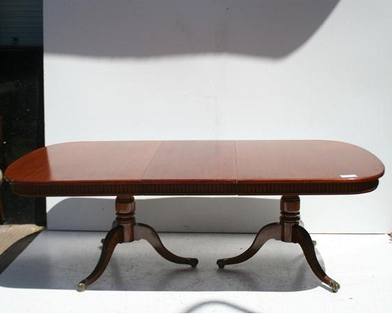 Espectacular Mesa de comedor estilo Inglés Luis XV con doble bocha Es ideal para vestir de forma única su comedor Se entrega con el repaso de lustre de la estructura de madera |