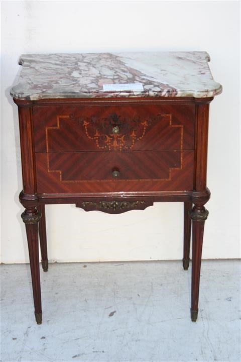 Espectacular par de mesas de luz estilo francés Luis XVI con tapa de mármol Son ideales para embellecer de forma única su dormitorio |