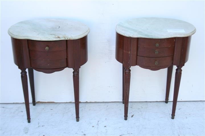 Espectacular par de mesas de luz estilo francés Luis XVI con tapa de mármol tipo riñon Son ideales para embellecer de forma única su dormitorio |