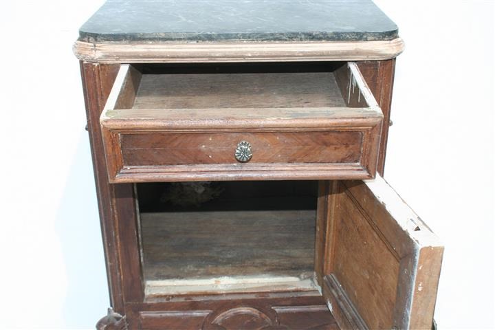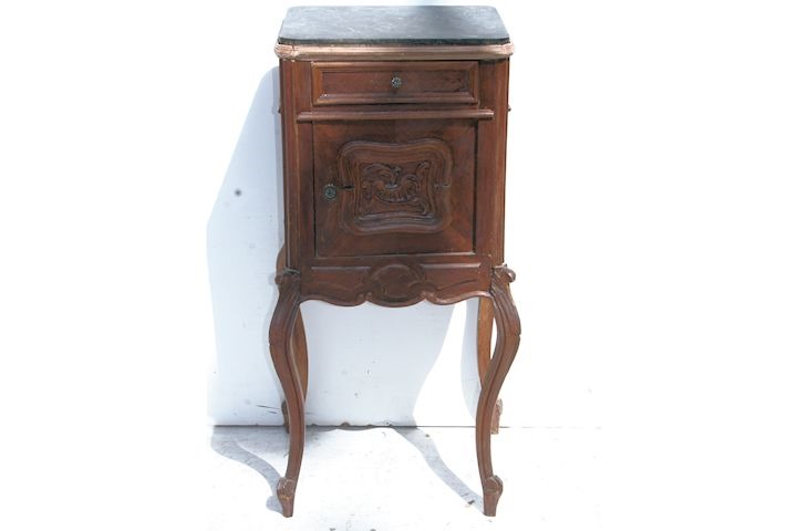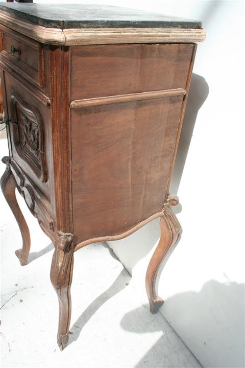 Espectacular mesa de luz estilo Francés Luis XV con tapa de mármol Es ideal para embellecer de forma única su dormitorio La mesa de luz está para restaurar y presenta distintos detalles a lo largo de toda su estructura, no se aceptan reclamos por su estado |