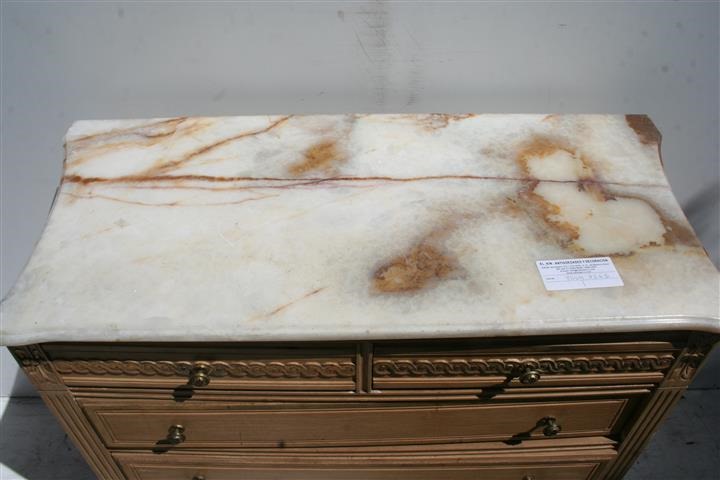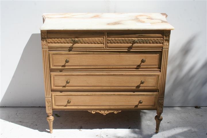 Increíble cómoda estilo francés Luis XVI patinada con tapa de mármol Es ideal para embellecer de forma única su dormitorio o cualquier otro ambiente de su hogar Posee 5 cajones de gran capacidad |
