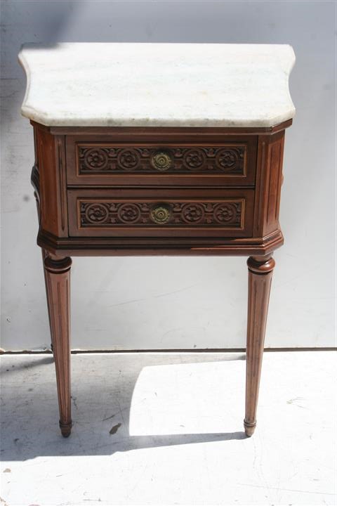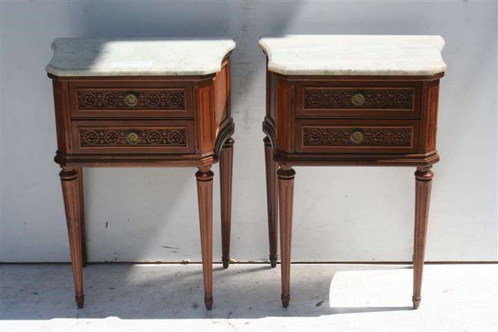 Espectacular par de mesas de luz estilo francés Luis XVI con tapa de mármol Son ideales para embellecer de forma única su dormitorio |