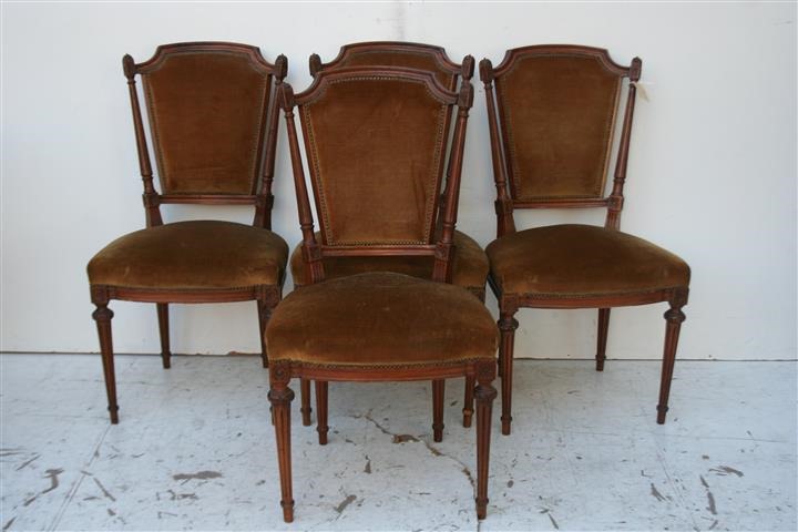 Espectacular juego de 4 sillas estilo francés Luis XVI con respaldo tapizado Son ideales para completar de forma única su juego de comedor El tapizado es antiguo consulte por retapizado, precios convenientes – |