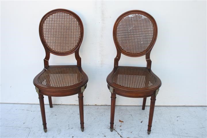 Espectacular par de sillas estilo francés Luis XVI antiguas con esterilla Son ideales para colocar en cualquier ambiente de su hogar La esterilla de una de las sillas presenta roturas, pero se puede reemplazar. |