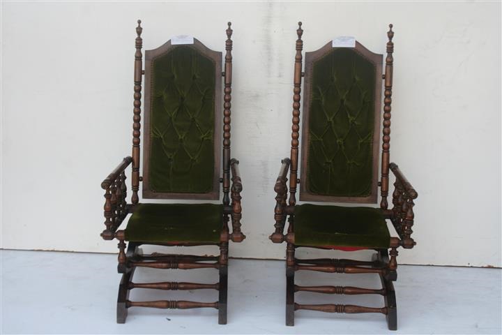 Espectacular par de sillones tipo mecedoras de madera De calidad excepcional, son ideales para colocar en su sala, living o comedor El tapizado es usado – consultar por reptapizado, precios convenientes – |