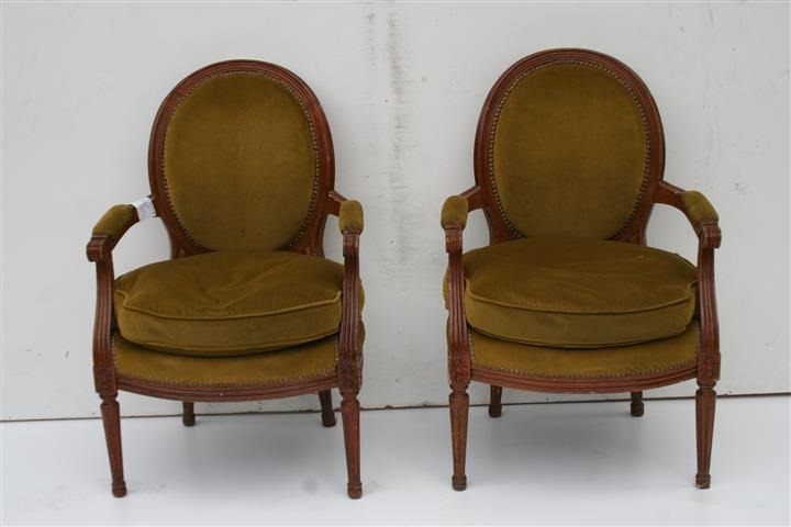 Espectacular par de sillones estilo francés Luis XVI tipo medallón De calidad excepcional, son ideales para colocar en su sala, living o comedor El tapizado es antiguo – consultar por reptapizado, precios convenientes