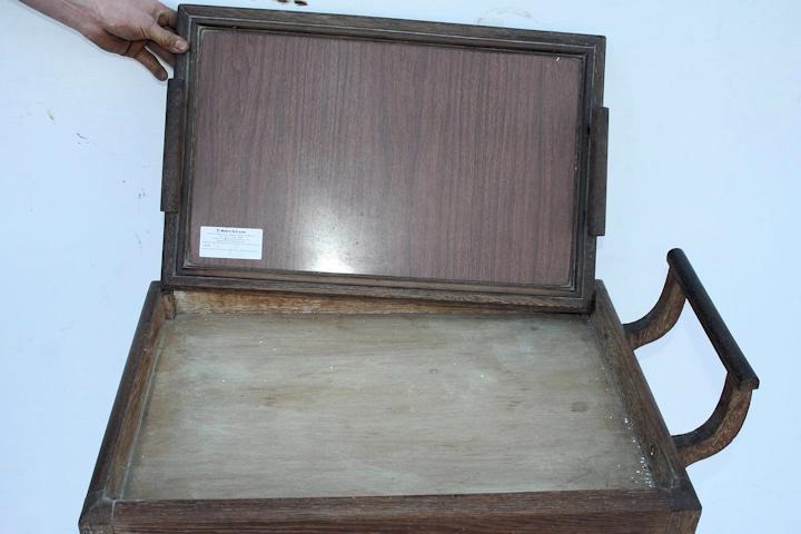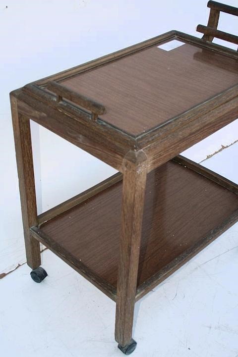 Espectacular mesa carrito de madera retro con bandeja de fórmica
