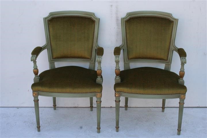 Espectacular par de sillones estilo francés Luis XVI patinados de cabecera De calidad excepcional, son ideales para colocar en su sala, living o comedor El tapizado es antiguo – consultar por reptapizado, precios convenientes – |