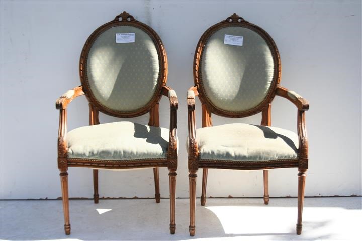 Espectacular par de sillones estilo francés Luis XVI tipo medallón De calidad excepcional, son ideales para colocar en su sala, living o comedor El tapizado es antiguo – consultar por reptapizado, precios convenientes – |
