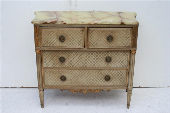 Espectacular cómoda estilo Francés Luis XVI de 4 cajones patinada con tapa de mármol Es ideal para embellecer de forma única o dormitorio, sala o estudio |