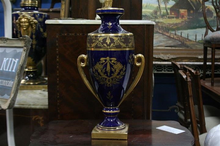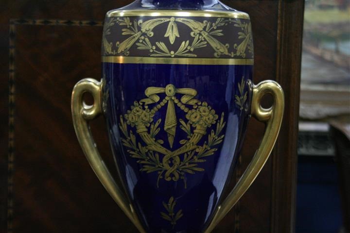 Espectacular ánfora antigua azul cobalto con decoración y asas esmaltadas al oro De calidad excepcional, es ideal para embellecer de forma única cualquier ambiente de su hogar |