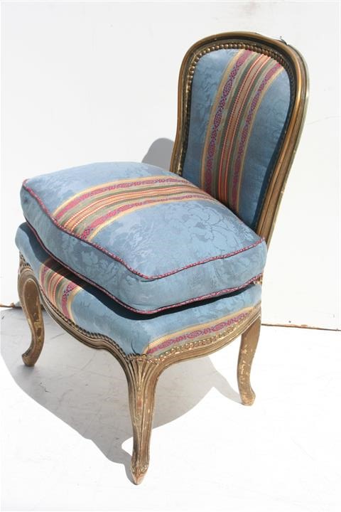 Espectacular silla estilo francés Luis XV de dormitorio patinada con almohadón Es ideal para embellecer de forma única su dormitorio o cualquier ambiente de su hogar El tapizado es antiguo – consulte por retapizado, precios convenientes – |
