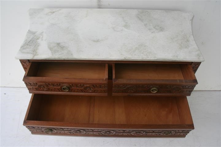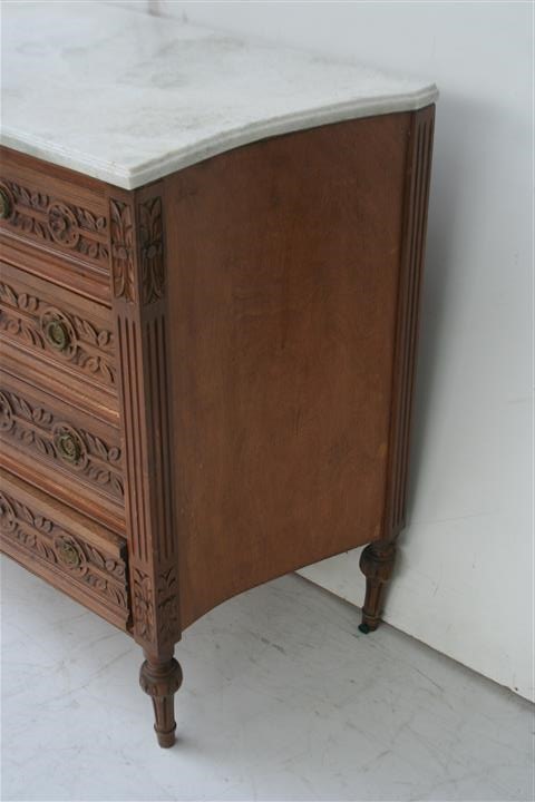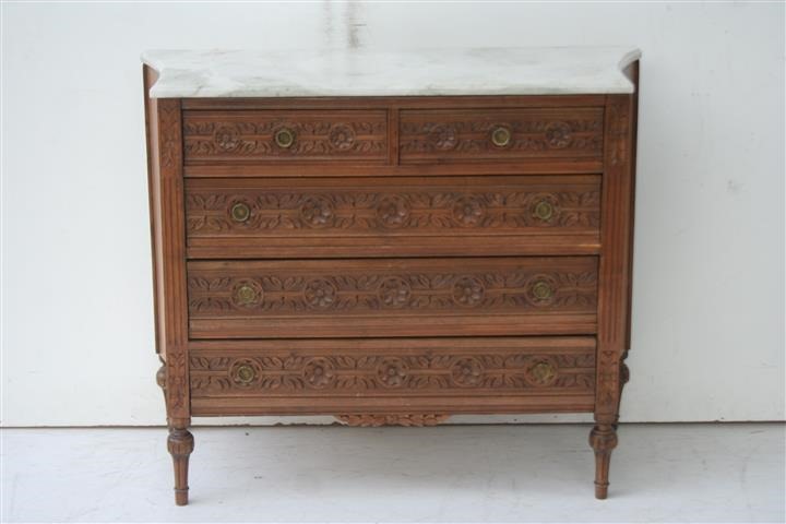 Espectacular cómoda estilo Francés Luis XVI de 5 cajones con tapa de mármol