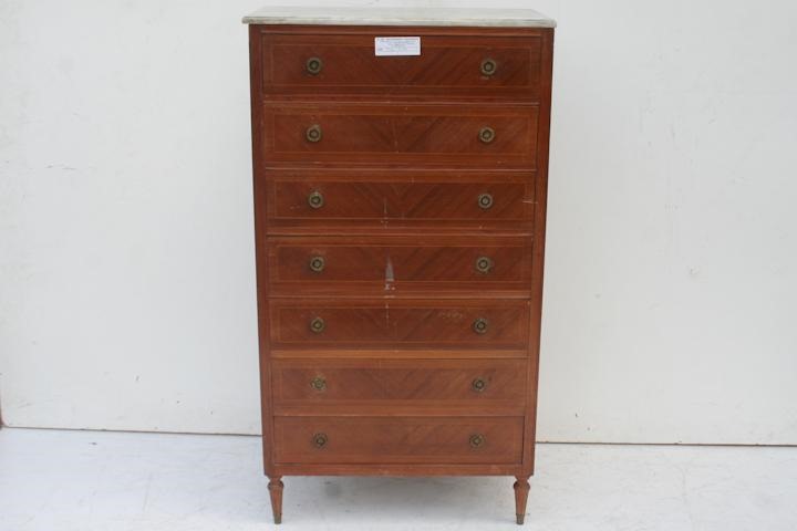 Increíble chiffonier estilo francés Luis XVI con tapa de mármol Bello y refinado, es ideal para colocar en su sala, living o comedor Posee 7 cajones a lo largo de toda su estructura |