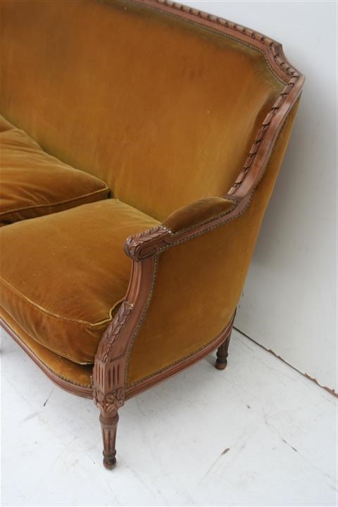 Espectacular sofá de 3 cuerpos estilo francés Luis XVI Es ideal para embellecer de forma única cualquier ambiente de su hogar El tapizado es usado – consultar por retapizado, precios convenientes – |