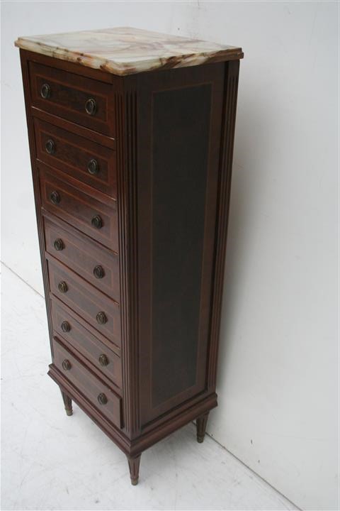 Increíble petit chiffonier estilo francés Luis XVI con tapa de mármol Bello y refinado, es ideal para colocar en su sala, living o comedor Posee 7 cajones a lo largo de toda su estructura |
