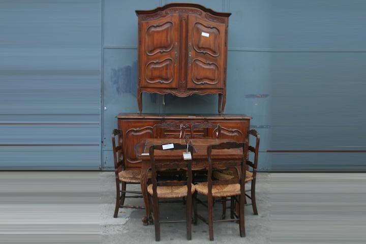 Espectacular juego de comedor estilo provenzal compuesto de: * Mesa de comedor * Juego de 6 sillas * Aparador * Bargueño El tapizado es usado – consultar por retapizado, precios convenientes – |