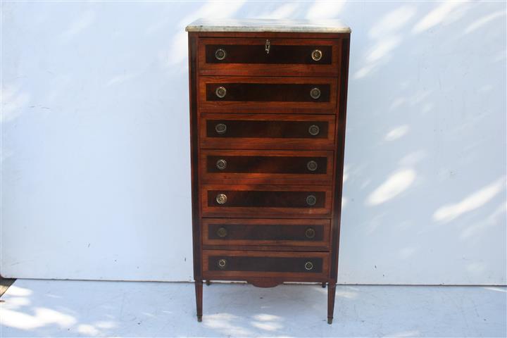 Increíble petit chiffonier estilo francés Luis XVI con tapa de mármol Bello y refinado, es ideal para colocar en su sala, living o comedor Posee 7 cajones a lo largo de toda su estructura |