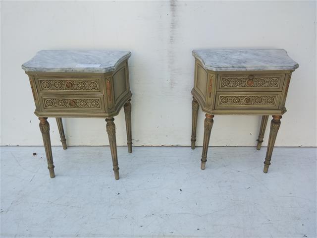 Espectacular par de mesas de luz estilo francés Luis XIV patinadas con tapa de mármol Son ideales para embellecer de forma única su dormitorio |