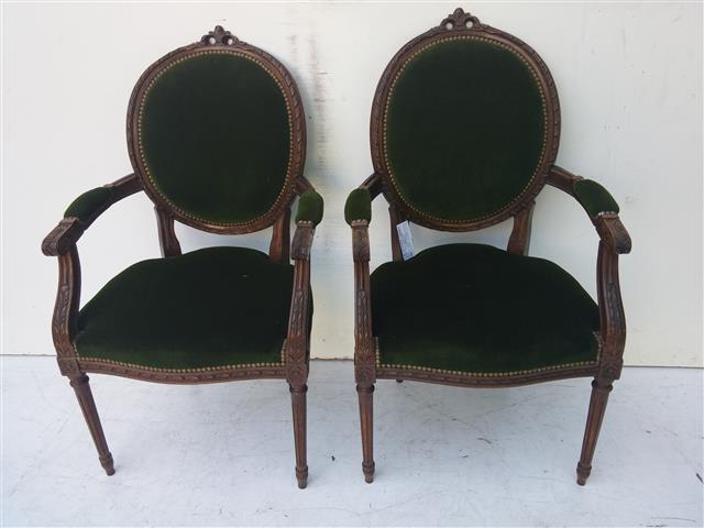 Espectacular par de sillones estilo francés Luis XVI tipo medallón De calidad excepcional, son ideales para embellecer de forma única living, sala o comedor El tapizado es usado – consultar por retapizado, precios convenientes – |