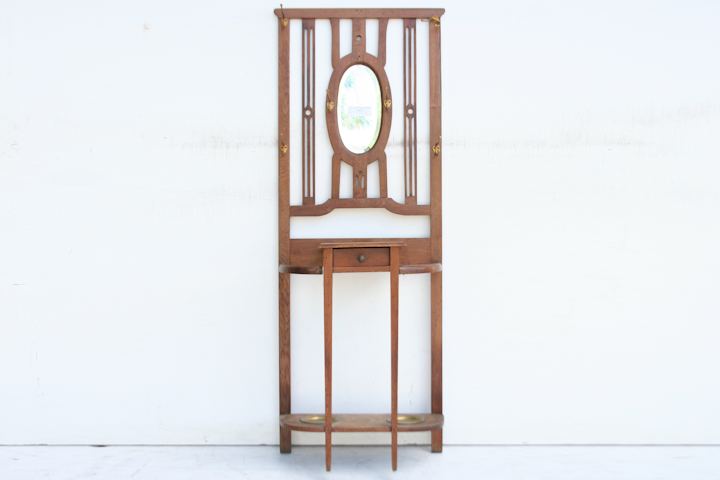 Espectacular perchero de roble con espejo biselado y cajón central De calidad excepcional, es ideal para embellecer de forma única cualquier ambiente de su hogar |