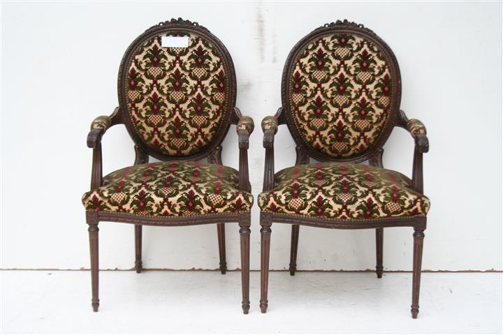 Espectacular par de sillones estilo francés Luis XVI Oval De calidad excepcional, son ideales para embellecer de forma única living, sala o comedor El tapizado es usado – consultar por retapizado, precios convenientes – |