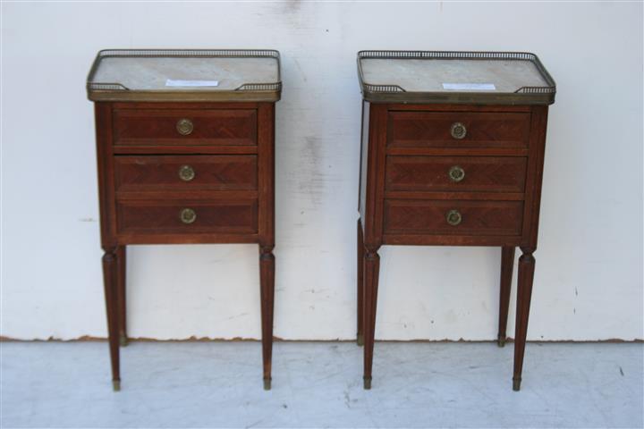 Espectacular par de mesas de luz estilo francés Luis XVI con tapa de mármol Son ideales para embellecer de forma única su dormitorio |