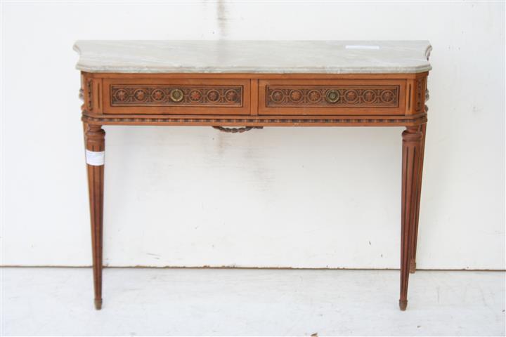 Espectacular consola estilo francés Luis XVI con tapa de mármol y dos cajones De calidad excepcional, es ideal para embellecer de forma única living, sala o comedor |