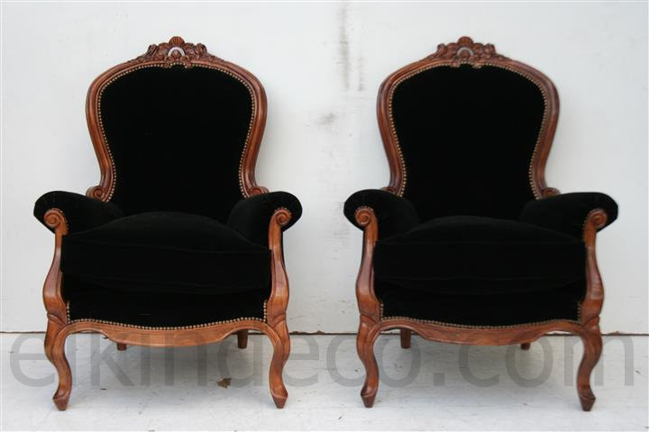 Espectacular Par de sillones de 1 cuerpo estilo colonial inglés Tapizado en pana negra Son ideales para embellecer de forma única cualquier ambiente de su hogar Las piezas tiene una excelente terminación, lustradas a muñeca