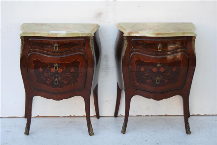 Espectacular par de mesas de luz estilo francés Luis XV bombé con tapa de mármol Son ideales para embellecer de forma única su dormitorio |
