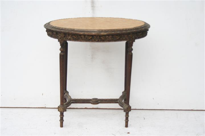 Espectacular mesa de sala estilo francés patinada con tapa de mármol y cruceta De calidad excepcional, es ideal para embellecer de forma única cualquier ambiente de su hogar |