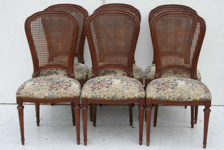 Espectacular Juego de 6 sillas estilo francés Luis XVI de respaldo de esterilla De calidad excepcional, son ideales para embellecer de forma única living, sala o comedor El tapizado es usado – consultar por retapizado, precios convenientes – Precio promocional exclusivo para Internet POR TODO EL JUEGO! |