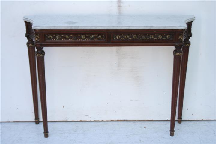 Espectacular consola estilo francés Luis XVI con tapa de mármol y dos cajones De calidad excepcional, es ideal para embellecer de forma única living, sala o comedor |