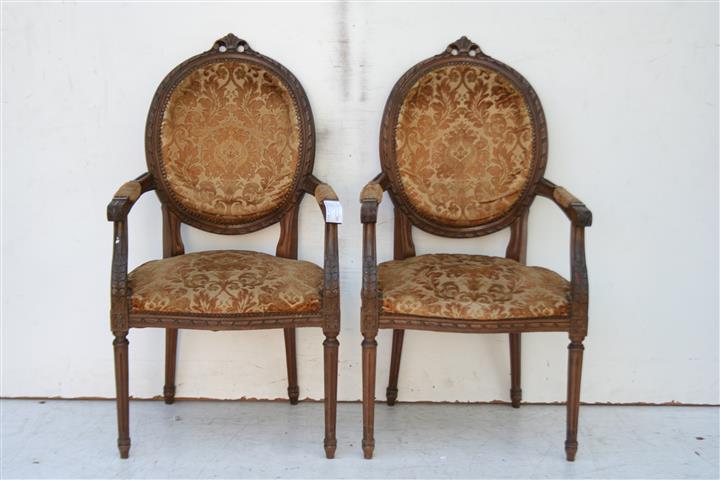 Espectacular par de sillones estilo francés Luis XVI tipo medallón De calidad excepcional, son ideales para embellecer de forma única living, sala o comedor El tapizado es usado – consultar por retapizado, precios convenientes – |