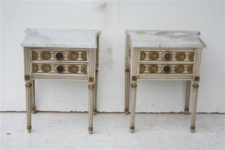 Espectacular par de mesas de luz estilo francés Luis XVI con tapa de mármol Son ideales para embellecer de forma única su dormitorio |