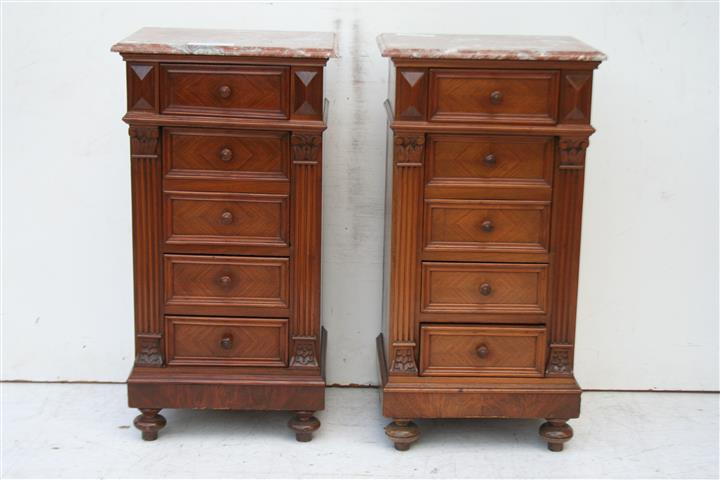 Espectacular par de mesas de luz estilo Renacimiento con tapa de mármol Son ideales para embellecer de forma única su dormitorio |