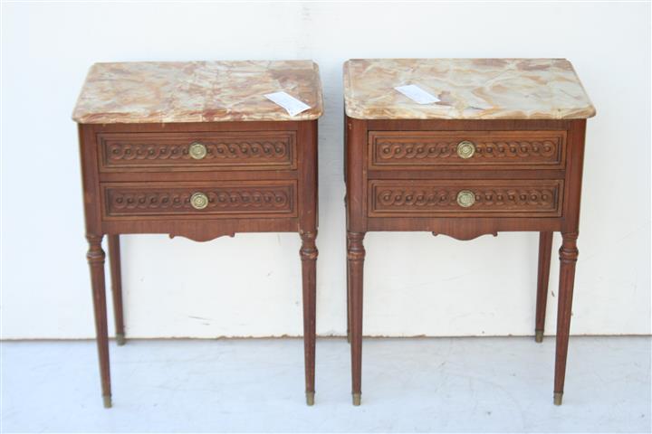 Espectacular par de mesas de luz estilo francés Luis XVI con tapa de mármol Son ideales para embellecer de forma única su dormitorio |