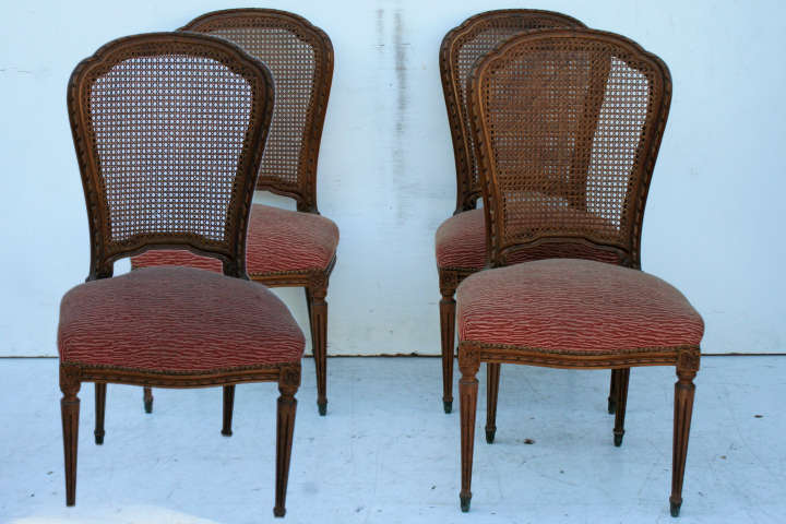 | Espectacular juego de 4 sillas estilo francés Luis XVI con respaldo de esterilla