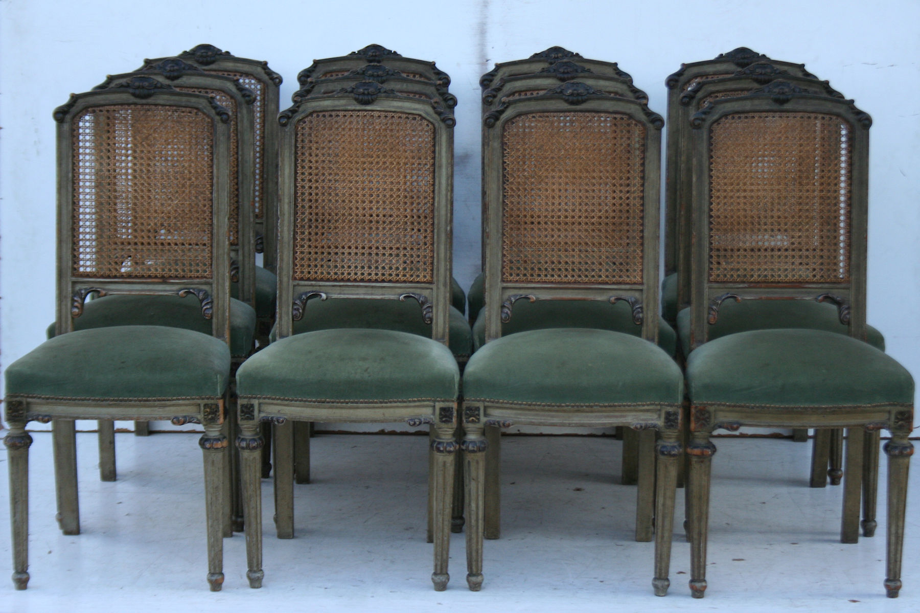 Espectacular Juego de 12 sillas estilo francés Luis XVI de respaldo de esterilla De calidad excepcional, son ideales para embellecer de forma única living, sala o comedor El tapizado es usado – consultar por retapizado, precios convenientes – |