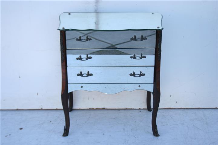 Espectacular Petit Cómoda de estilo francés Luis XV espejada con 3 cajones