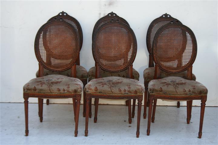 Espectacular Juego de 6 sillas estilo francés Luis XVI tipo medallón de respaldo de esterilla De calidad excepcional, son ideales para embellecer de forma única living, sala o comedor El tapizado es usado – consultar por retapizado, precios convenientes – |