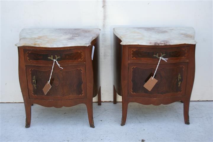 Espectacular par de mesas de luz estilo francés Luis XV con tapa de mármol Son ideales para embellecer de forma única su dormitorio |