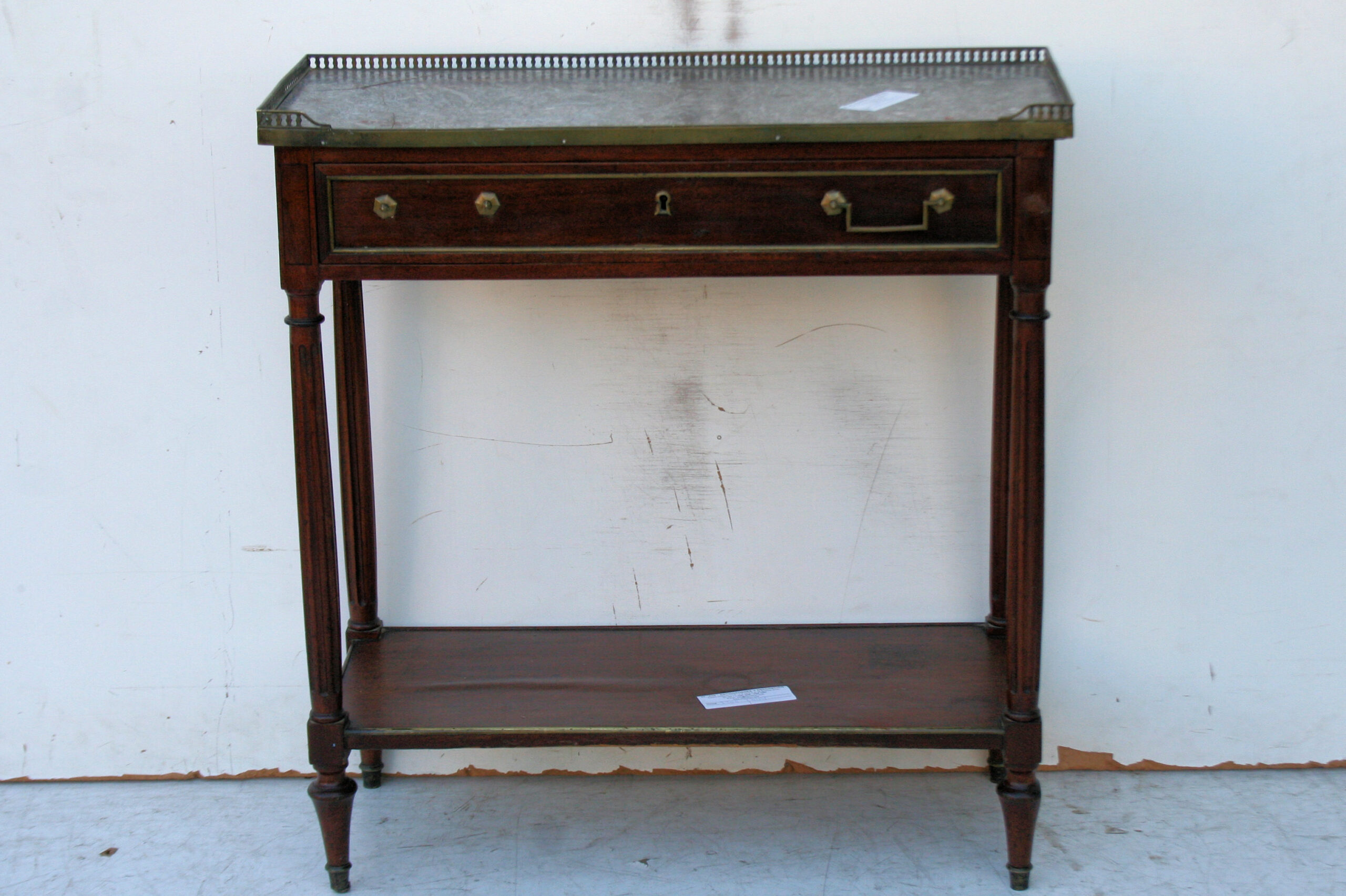 Única! Espectacular consola doble plano estilo francés Luis XVI con tapa de mármol y baranda de bronoce