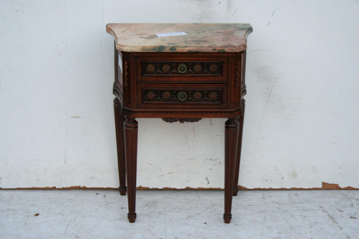 – Mesa de luz estilo francés Luis XVI con tapa de mármol
